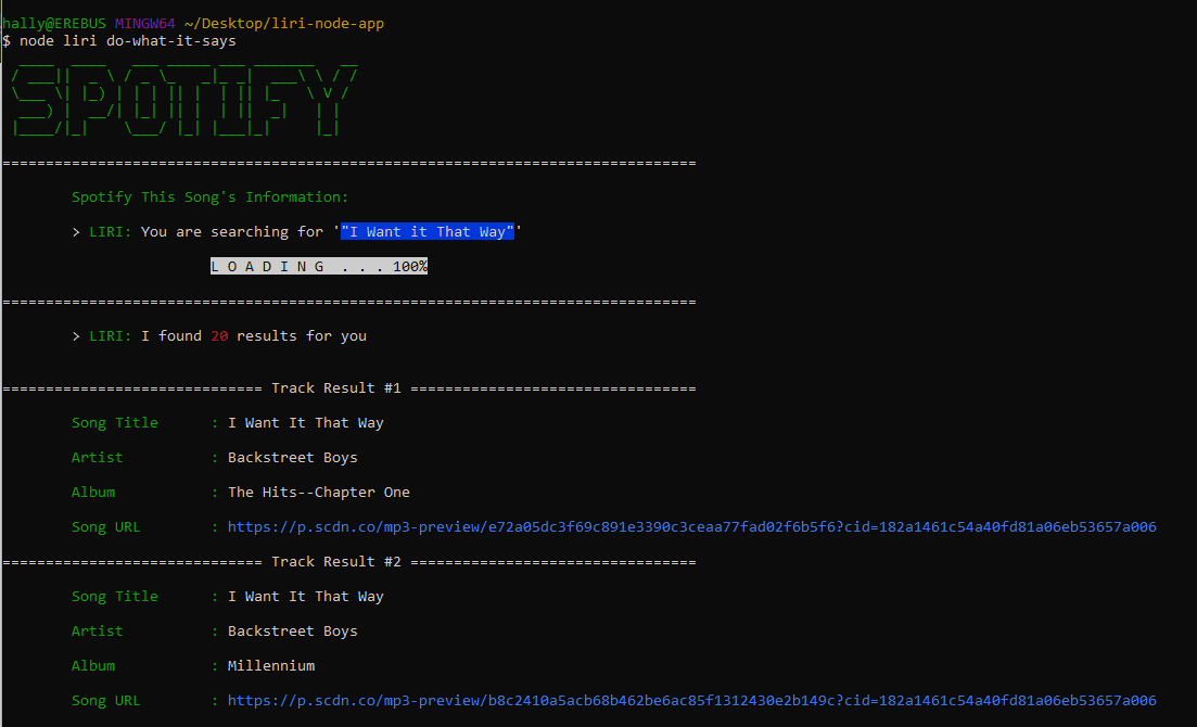 LIRI is like iPhone's SIRI. However, while SIRI is a Speech Interpretation and Recognition Interface, LIRI is a Language Interpretation and Recognition Interface. LIRI will be a command line node app that takes in parameters and then responses with the data back to the user.